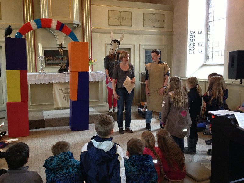 Mit 10 Wendeburger Kindergottesdienstkindern und zwei Helfern waren wir am Samstag, 27. April 2013 in unserer Nachbargemeinde Watenbüttel zu Gast beim Kinderbibeltag. Die Diakonen Heidi Michaelsen hatte mit vier ehrenamtlichen Helfern ein buntes Programm mit biblischem Anspiel, Liedern, Gebet, Bastelaktionen, Muffins-backen und Spielen für Kinder zwischen 6 und 10 Jahren vorbereitet. Beim Anspiel um einen lahmen Bettler vor der schönen Pforte des Tempels (Eike) erzählten Rabe (Anja) und Esel (Lena), wie Petrus und Johannes (Freunde Jesu, spontan gespielt von zwei Kindern) den Bettler angesehen und gesund gemacht haben. Sowohl Kinder aus Watenbüttel und Völkenrode als auch aus Wendeburg durften bei diesem Anspiel als Spontanschauspieler mitwirken. Beim gemeinsamen Singen stellten beide Kindergottesdienstgruppen jeweils eins ihrer Lieblingslieder vor und brachten es den Kindern aus der anderen Gemeinde bei. Und bei den Bastelaktionen und dem Mittagessen (Nudeln und Tomatensoße) waren dann die Gruppen schon bunt gemischt und die eine oder andere neue Freundschaft bahnte sich an. Als nach gut 4 Stunden Zeit zum Aufbruch war, bedauerten einige das sehr, hätten sie doch gerne noch das eine oder andere Spiel weitergespielt oder noch mehr Freundschaftsarmbänder geknotet. Zum Schluss waren sich alle einig: Das war ein schöner gemeinsamer Tag und gern feiern wir wieder einmal zusammen Kindergottesdienst.
