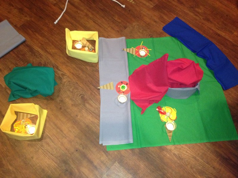 Vor rund 4 Jahren wurden durch das Amt für Kindergottesdienst für jede Propstei zwei Koffer mit Tüchern und Bodenlegematerialien angeschafft, die von den Gemeinden und Kindergärten ausgeliehen werden können. Doch wie kann man mit diesem Material umgehen, wie es für biblisches Erzählen gut einsetzen? Und bleiben die Tücher tatsächlich plastisch stehen? Auf diese und andere Fragen ging Klaus-Dieter Braun in drei verschiedenen Praxisentwürfen ein und ließ alle Teilnehmer mitgestalten.